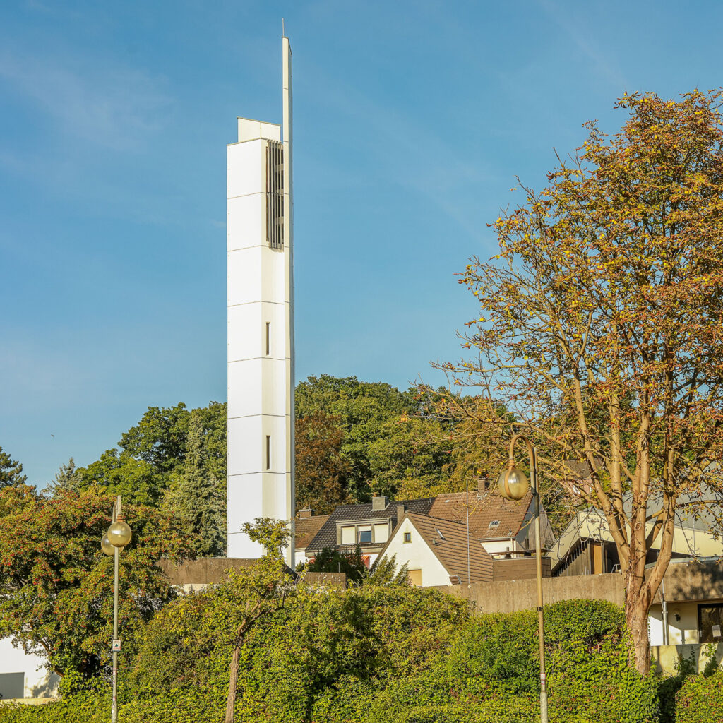 die Kreuzkirche mit dem Gemeindezentrum in Kerpen-Horrem, Mühlengraben 10-14